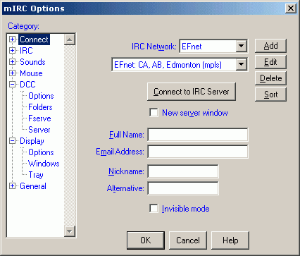 to connect to. Step 2:Fill Out "Full Name" "E-Mail Address" "Nickname" Step 3: Press "OK" Ok now that you are connected you can advanced to the next step [if you are not connected leave this page because mirc is just not for you.] |